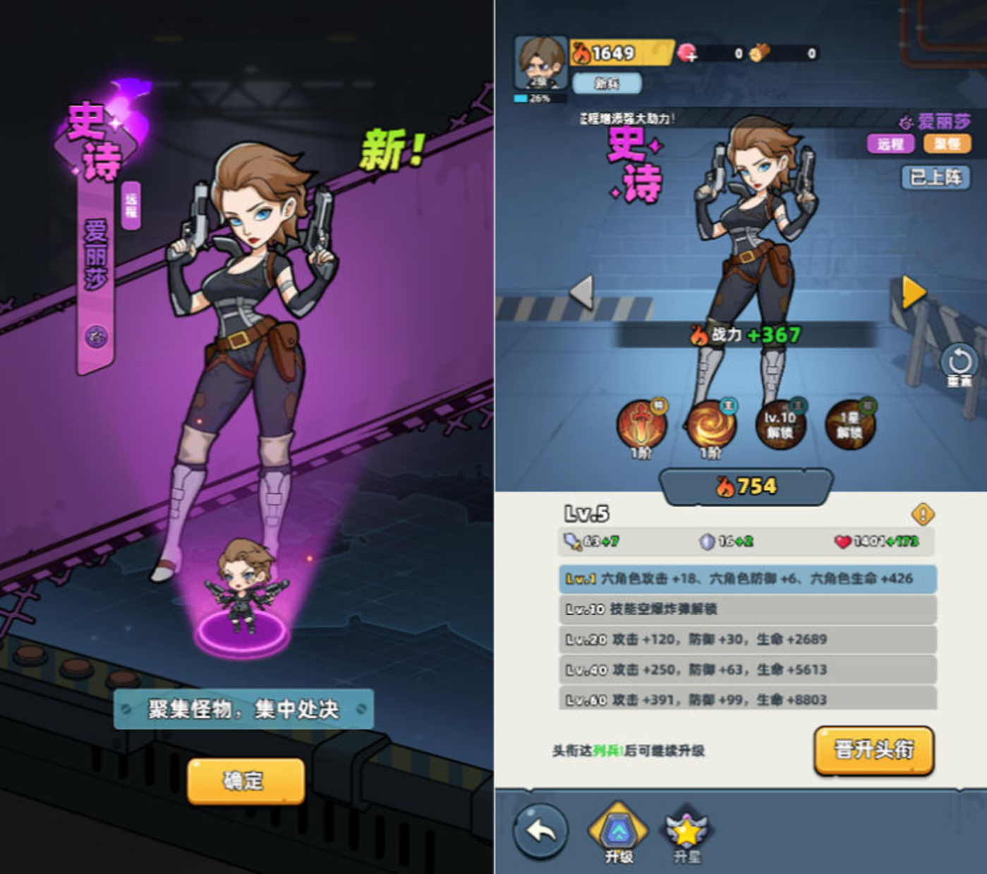 具体在游戏玩法方面,《生存33天》的核心成长系统是角色养成。每个角色都有各自的定位,如战士、坦克、辅助、和远程四个职业,每个角色都可以升级和升星,用来提升属性和解锁更多技能。