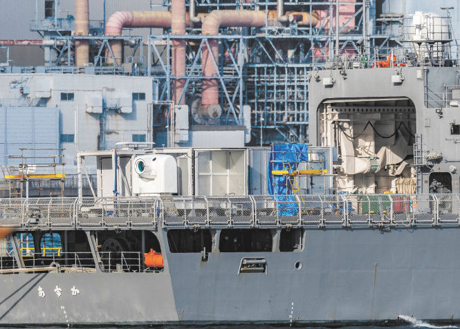 编者的话:继日本自民党议员公然叫嚣日本电磁炮可以击沉他国航母之后,又有国外媒体近日曝光日本发展高能激光武器的*新进展——一套集装箱式的高能激光武器系统原型机已被安装于日本海上自卫队的专用试验舰“飞鸟”号的甲板上。这些新型武器的真实技术水平如何?日本这一连串动作释放了哪些危险信号?