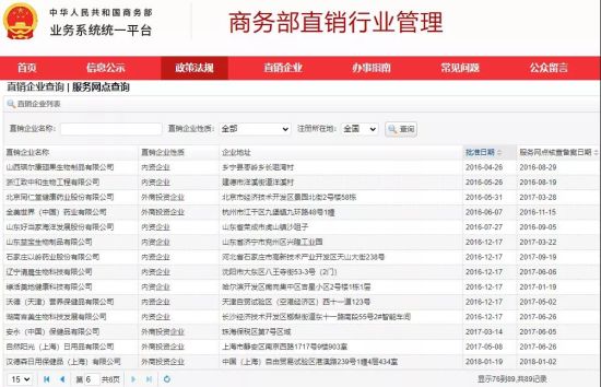 商务部信息显示,目前我国共有89家取得直销经营许可证的直销企业,其中内资企业57家,外商投资企业32家,包括安利、完美、玫琳凯、康宝莱、东阿阿胶、隆力奇等。而达尔威未在该名单中。