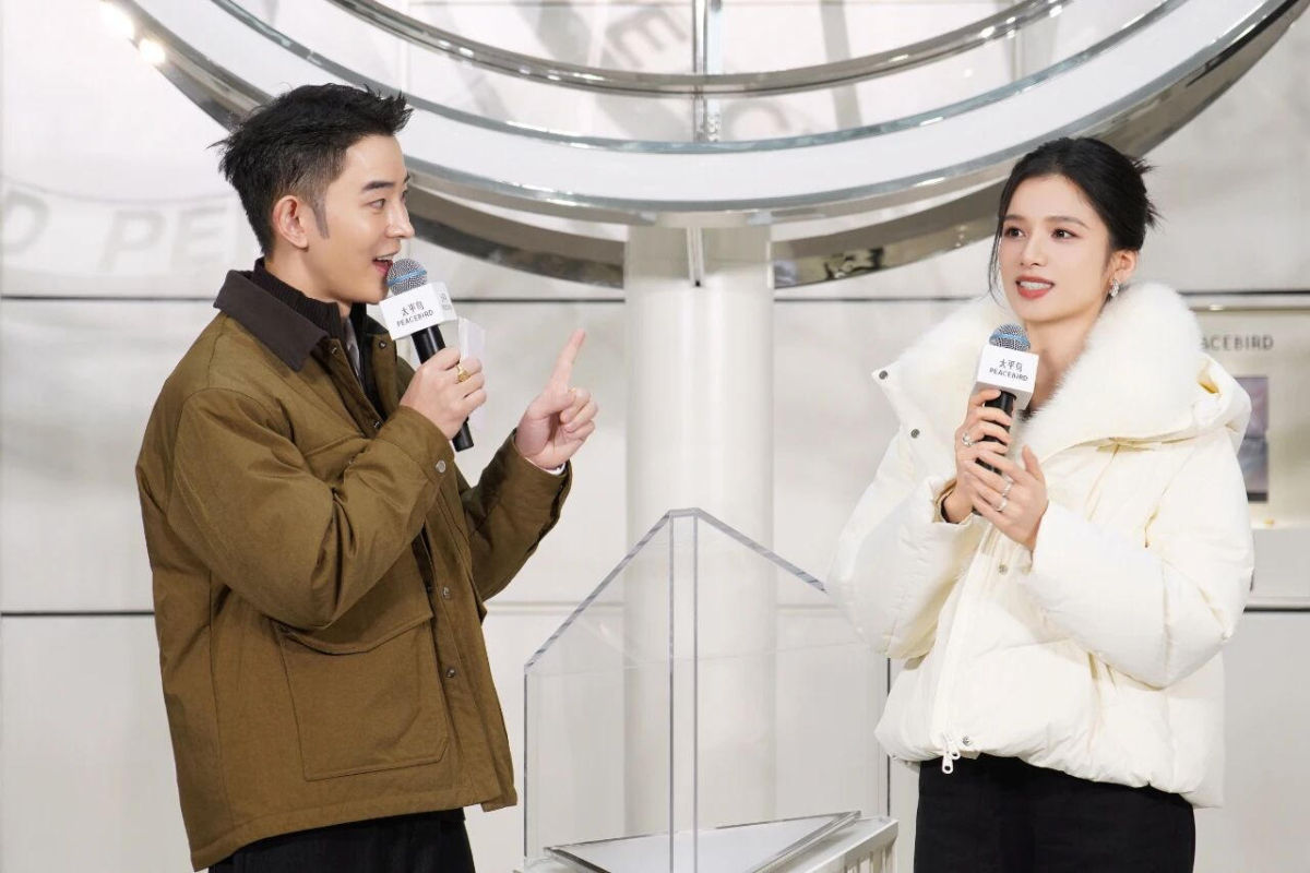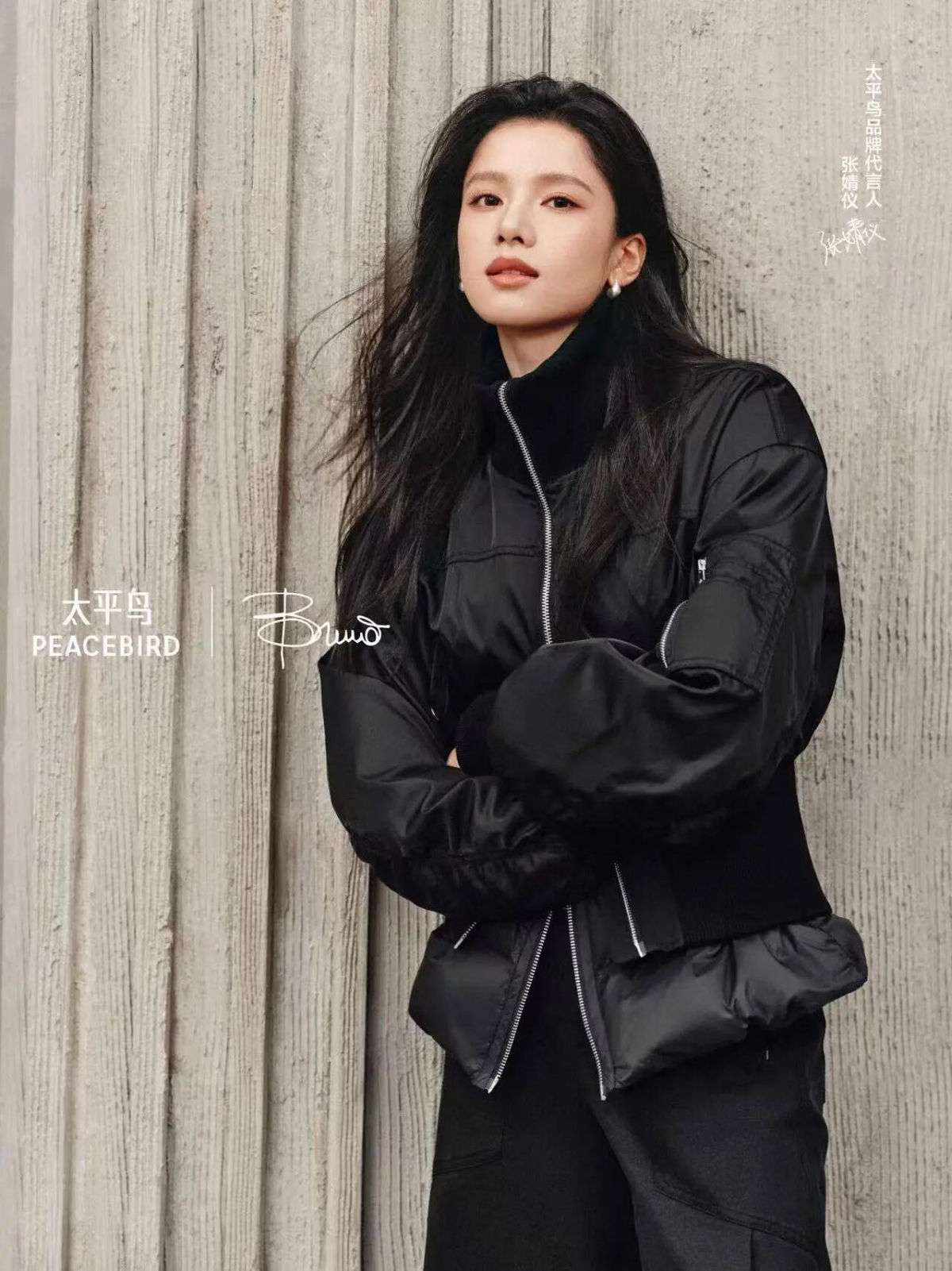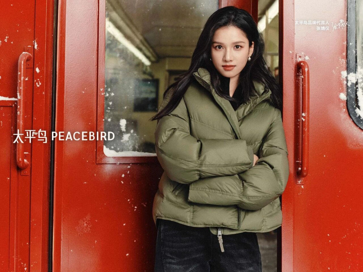 太平鸟品牌代言人张婧仪身穿PEACEBIRD× Ludovico Bruno大师羽绒