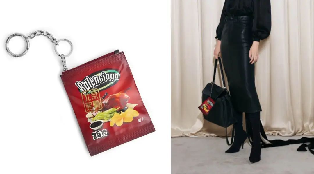 *近,巴黎世家推出的一款“北京烤鸭包”也颇受关注。从网友分享的视频来看,这款包整体像个薯片包装袋,上方封口处有拉链,正面印着大大的“北京烤鸭”四个字,下面也真的画了一只烤鸭,左下角还有“150克”的字样,反面还有营养成分表。