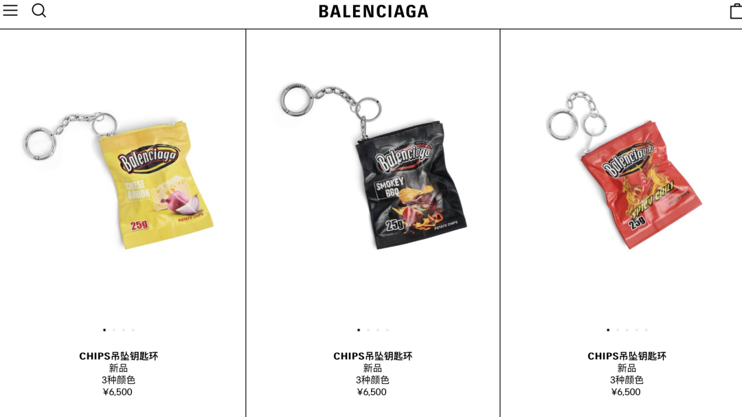此前,巴黎世家官网显示这款挂饰售价6500元,目前官网已经搜索不到这款“北京烤鸭挂饰”,但同系列的其他三款仍然在售,价格6500元。怎么说呢,作为挂饰,这设计是挺有创意的,但若结合价格来看,难免觉得“离谱”。