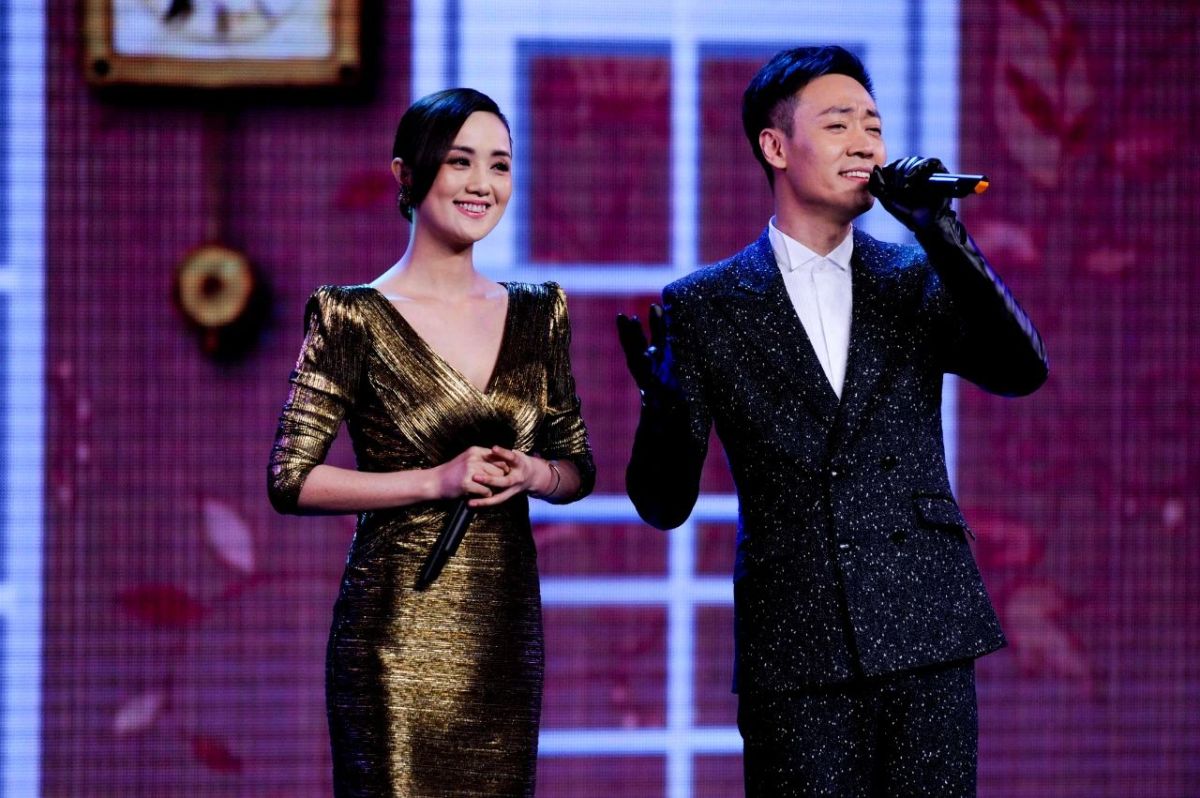 朱媛媛与辛柏青同台出席晚会 图/中新社发 陆欣摄