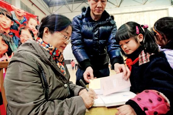 2015年8月19日,郑渊洁在上海书展上现场签售,很多家长都带着小朋友前来捧场,向自己童年偶像致敬。图/中新
