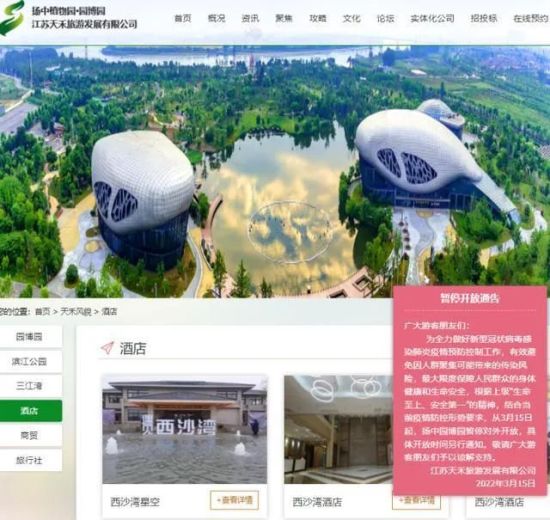 在天禾公司官网上,西沙湾星空酒店和扬中园博园等作为旗下风采项目对外展示,一同展示的还有扬中滨江公园、扬中市旅行社等。目前,网站上有关西沙湾星空酒店的内容已被删除。