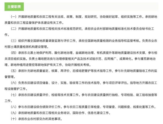 主要职责公布(图/耕地质量和农田工程监督保护中心官网)