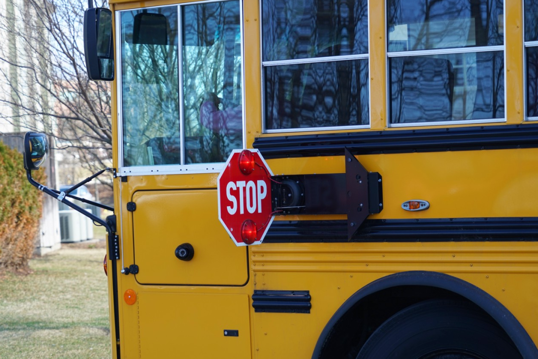 在美国交规中,只要校车亮起红色警示灯,并伸出停车信号臂,所有车辆必须立即停车、禁止超车。