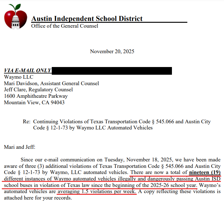 然而据学区透露,Waymo态度明确,拒绝暂停运营。