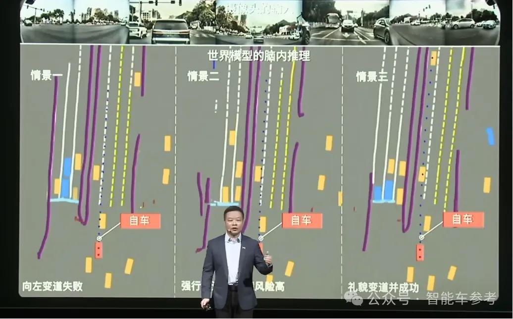 何小鹏:我们是V+L,我们没有转换成人类的语言和格式,而是变成了物理世界的新语言,它不是一个人类可见可认知的语言,效率很好,更丰富;第二,它能够中间在decoding(解码),我们完全可以推导中间的过程,例如为什么他明明该往左,但是他没有这么做,这些我们都已经在物理世界模型的评测里做到了。
