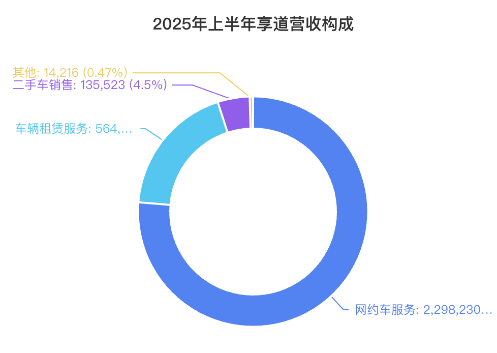拆分营收,可以发现享道出行当下,以网约车为绝对主要收入: