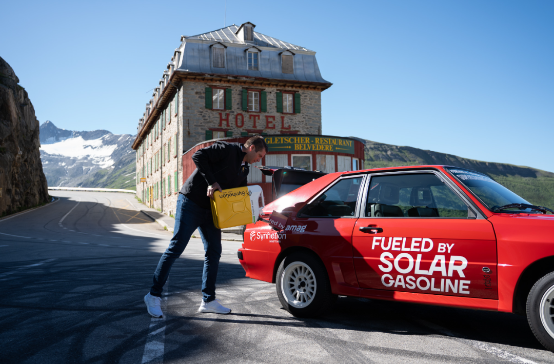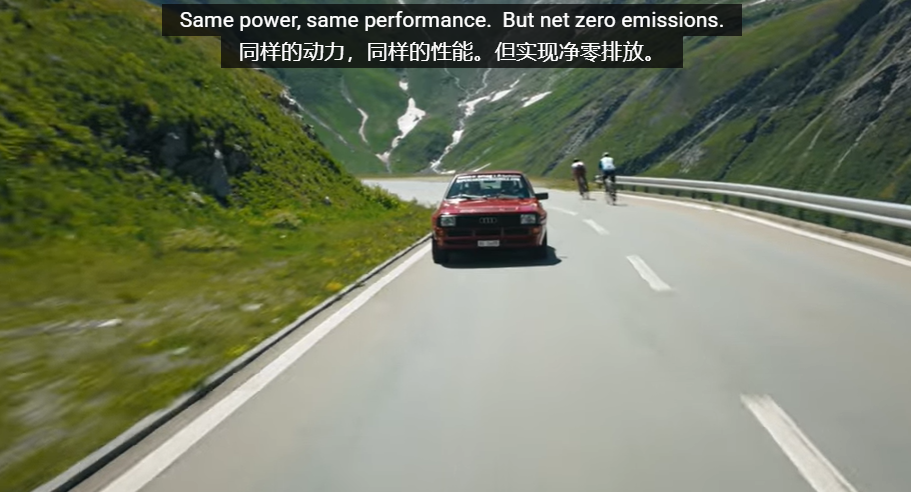 不久前的宣传片里,团队还开着一辆1985年的奥迪四驱跑车Sport Quattro,使用这种太阳能燃料爬上阿尔卑斯山著名的富尔卡山口。