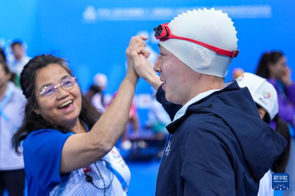 在全国第十二届残疾人运动会暨第九届特殊奥林匹克运动会特奥游泳赛场,有一位热情开朗的运动员,他是内蒙古队选手孙宇亮。 赛场上孙宇亮的实力与热情使他备受瞩目:在个人和接力项目共获得五枚金牌,入场时他会高举双手与观众互动;触壁后他**时间向观众和裁判致意,分享胜利喜悦。 孙宇亮自幼被确诊为孤独症,但他对运动充满热爱。2016年孙宇亮进入呼和浩特特奥冰轮速滑队学习,开始系统性训练。随后,他在速滑、田径和游泳项目上不断取得突破。对运动的热爱与坚持,让孙宇亮收获了荣誉,让他变得更加自信、开朗。 12月14日,孙宇亮展示本届赛会获得的五枚金牌。 新华社记者 伍志尊 摄 在全国第十二届残疾人运动会暨第九届特殊奥林匹克运动会特奥游泳赛场,有一位热情开朗的运动员,他是内蒙古队选手孙宇亮。 赛场上孙宇亮的实力与热情使他备受瞩目:在个人和接力项目共获得五枚金牌,入场时他会高举双手与观众互动;触壁后他**时间向观众和裁判致意,分享胜利喜悦。 孙宇亮自幼被确诊为孤独症,但他对运动充满热爱。2016年孙宇亮进入呼和浩特特奥冰轮速滑队学习,开始系统性训练。随后,他在速滑、田径和游泳项目上不断取得突破。对运动的热爱与坚持,让孙宇亮收获了荣誉,让他变得更加自信、开朗。 12月14日,孙宇亮(中)在男子22-29岁组4X50米混合泳接力决赛第1组开始前向观众致意。 新华社记者 伍志尊 摄 在全国第十二届残疾人运动会暨第九届特殊奥林匹克运动会特奥游泳赛场,有一位热情开朗的运动员,他是内蒙古队选手孙宇亮。 赛场上孙宇亮的实力与热情使他备受瞩目:在个人和接力项目共获得五枚金牌,入场时他会高举双手与观众互动;触壁后他**时间向观众和裁判致意,分享胜利喜悦。 孙宇亮自幼被确诊为孤独症,但他对运动充满热爱。2016年孙宇亮进入呼和浩特特奥冰轮速滑队学习,开始系统性训练。随后,他在速滑、田径和游泳项目上不断取得突破。对运动的热爱与坚持,让孙宇亮收获了荣誉,让他变得更加自信、开朗。 12月14日,内蒙古队第四棒选手孙宇亮在男子22-29岁组4X50米混合泳接力决赛后庆祝。比赛中孙宇亮面对落后局面奋起直追实现反超,*终内蒙古队夺得冠军。 新华社记者 伍志尊 摄 在全国第十二届残疾人运动会暨第九届特殊奥林匹克运动会特奥游泳赛场,有一位热情开朗的运动员,他是内蒙古队选手孙宇亮。 赛场上孙宇亮的实力与热情使他备受瞩目:在个人和接力项目共获得五枚金牌,入场时他会高举双手与观众互动;触壁后他**时间向观众和裁判致意,分享胜利喜悦。 孙宇亮自幼被确诊为孤独症,但他对运动充满热爱。2016年孙宇亮进入呼和浩特特奥冰轮速滑队学习,开始系统性训练。随后,他在速滑、田径和游泳项目上不断取得突破。对运动的热爱与坚持,让孙宇亮收获了荣誉,让他变得更加自信、开朗。 12月14日,内蒙古队第四棒选手孙宇亮在男子22-29岁组4X50米混合泳接力决赛中。比赛中孙宇亮面对落后局面奋起直追实现反超,*终内蒙古队夺得冠军。 新华社记者 伍志尊 摄 在全国第十二届残疾人运动会暨第九届特殊奥林匹克运动会特奥游泳赛场,有一位热情开朗的运动员,他是内蒙古队选手孙宇亮。 赛场上孙宇亮的实力与热情使他备受瞩目:在个人和接力项目共获得五枚金牌,入场时他会高举双手与观众互动;触壁后他**时间向观众和裁判致意,分享胜利喜悦。 孙宇亮自幼被确诊为孤独症,但他对运动充满热爱。2016年孙宇亮进入呼和浩特特奥冰轮速滑队学习,开始系统性训练。随后,他在速滑、田径和游泳项目上不断取得突破。对运动的热爱与坚持,让孙宇亮收获了荣誉,让他变得更加自信、开朗。 12月14日,孙宇亮在男子22-29岁组100米自由泳决赛第1组结束后庆祝夺冠。 新华社记者 齐芷玥 摄 在全国第十二届残疾人运动会暨第九届特殊奥林匹克运动会特奥游泳赛场,有一位热情开朗的运动员,他是内蒙古队选手孙宇亮。 赛场上孙宇亮的实力与热情使他备受瞩目:在个人和接力项目共获得五枚金牌,入场时他会高举双手与观众互动;触壁后他**时间向观众和裁判致意,分享胜利喜悦。 孙宇亮自幼被确诊为孤独症,但他对运动充满热爱。2016年孙宇亮进入呼和浩特特奥冰轮速滑队学习,开始系统性训练。随后,他在速滑、田径和游泳项目上不断取得突破。对运动的热爱与坚持,让孙宇亮收获了荣誉,让他变得更加自信、开朗。 12月14日,孙宇亮(左)在男子22-29岁组100米自由泳第1组决赛后与母亲庆祝。 新华社记者 伍志尊 摄 在全国第十二届残疾人运动会暨第九届特殊奥林匹克运动会特奥游泳赛场,有一位热情开朗的运动员,他是内蒙古队选手孙宇亮。 赛场上孙宇亮的实力与热情使他备受瞩目:在个人和接力项目共获得五枚金牌,入场时他会高举双手与观众互动;触壁后他**时间向观众和裁判致意,分享胜利喜悦。 孙宇亮自幼被确诊为孤独症,但他对运动充满热爱。2016年孙宇亮进入呼和浩特特奥冰轮速滑队学习,开始系统性训练。随后,他在速滑、田径和游泳项目上不断取得突破。对运动的热爱与坚持,让孙宇亮收获了荣誉,让他变得更加自信、开朗。 12月14日,孙宇亮在男子22-29岁组4X50米自由泳接力第1组决赛后庆祝夺冠。 新华社记者 伍志尊 摄 在全国第十二届残疾人运动会暨第九届特殊奥林匹克运动会特奥游泳赛场,