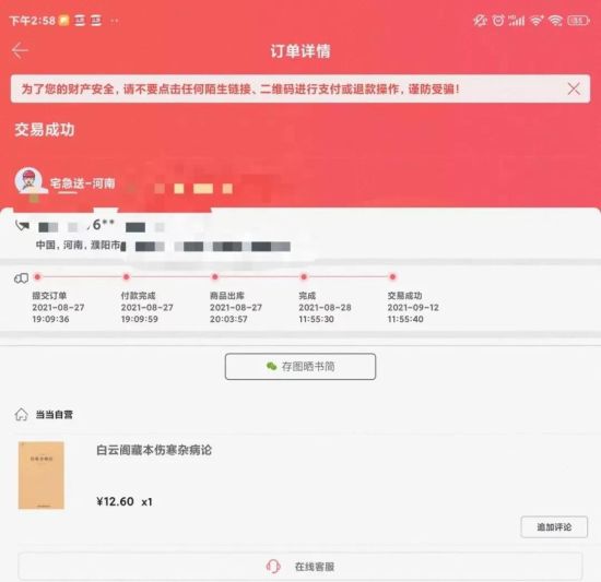 那他自己的账户去哪了?而且他前两天刚为自己的账户充值200元,自己的账户和这200元购书款怎么会不翼而飞?在疑惑之际,他**时间联系了在线人工客服,并陆续将看到他人购买信息,包括账号、邮寄地址、书名等情况,通过截图的方式告知客服,反复沟通无果。