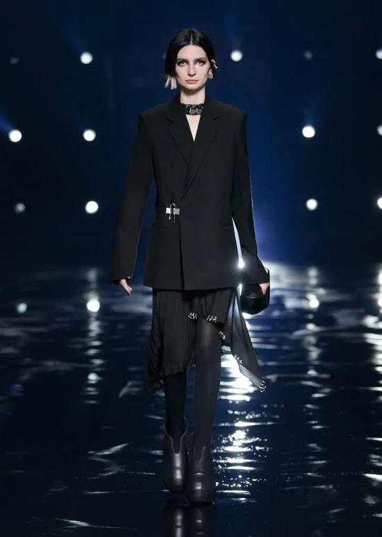 上星期巴黎时装周的纪梵希(Givenchy)秀场上,伴随音乐响起,灯光在黑暗中聚焦在一个棱角分明,描着银色眼线,染着不对称短发的女孩身上。