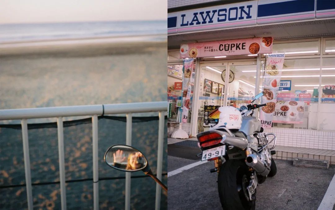 和摄影师一起去了镰仓,摩托车一直骑到大海边,还在罗森便利店门口小憩。