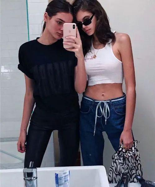 她和“超模星二代”中的榜样 Kaia Gerber 是好友,一起逛街一起晒日光浴,还经常在对方的 Instagram 下留言互动,连基本款的穿衣风格都相互影响。