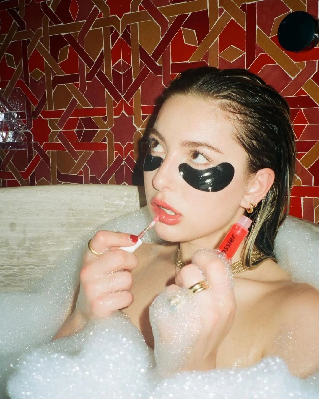 为美妆品牌 Glossier 站台拍照,并不是伊芙**次“出道”。