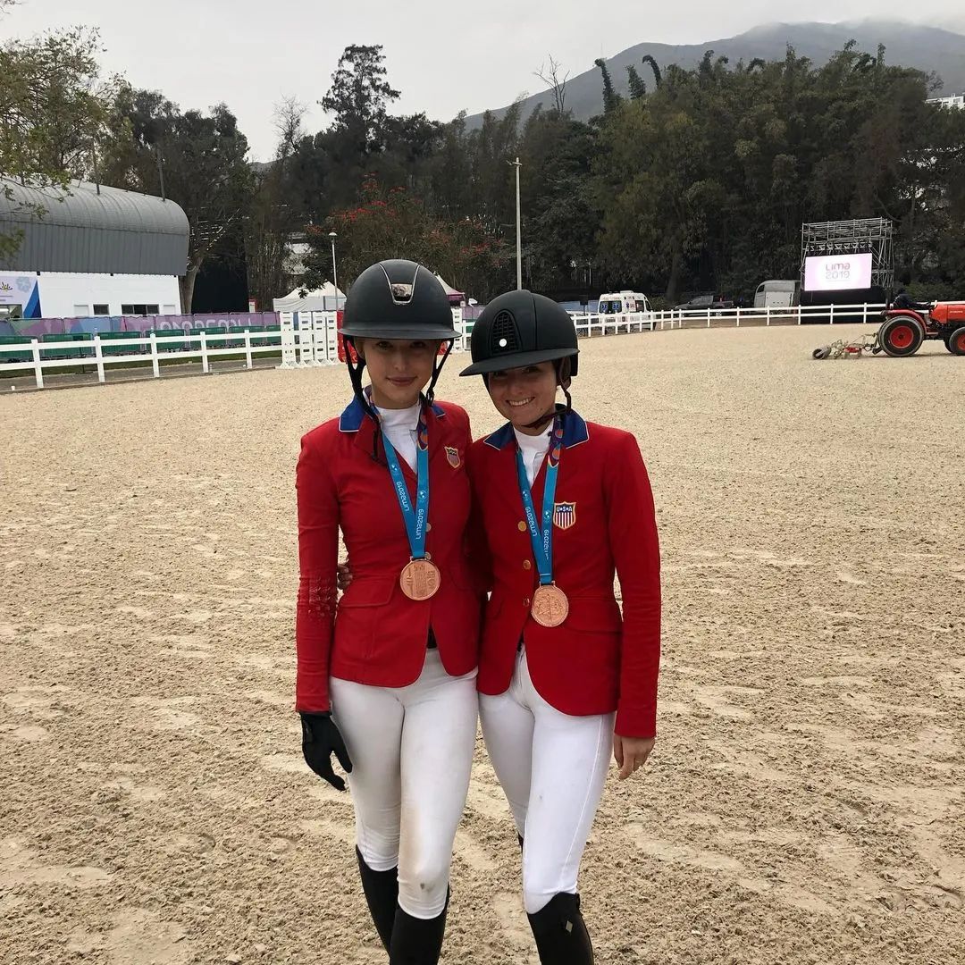 去年,伊芙在在泛美运动会上获得场地障碍赛铜牌,詹妮弗和乔治娜在她的照片下为她加油打气。