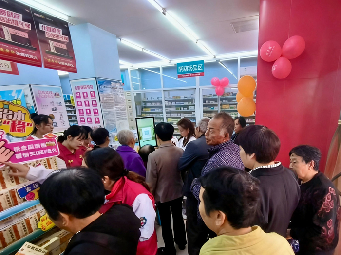 活动当日,合作药店现场人气十足——门店外客流络绎不绝,店内体质检测区、健康咨询台及壮腰鸡汤品鉴区均围满参与居民,不少人拿着检测报告与工作人员深入交流,热闹又有序。