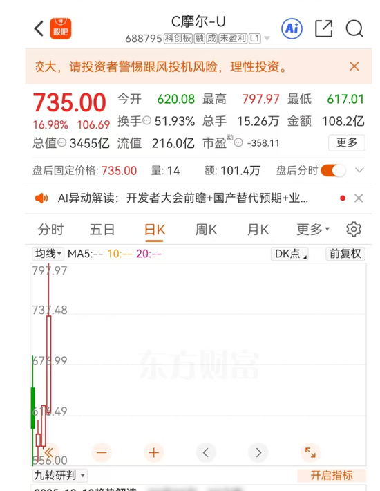 摩尔线程市值 3455 亿
