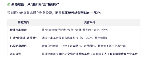 公告信息显示,深圳报业集团,通过旗下投资平台“深报一本股权投资基金”作为早期投资方,参与了国产GPU企业摩尔线程的投资,并在其2025年12月科创板上市后获得显著回报。具体多少到目前没有公开信息,但根据目前媒体类科创的投资每笔在 3000万到 1 亿,按照*低的 3000 万投资,深圳报业是一本基金的大股东,占 34%股份。