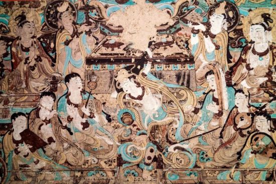 莫高窟壁画中的反弹琵琶乐舞像 图/视觉中国
