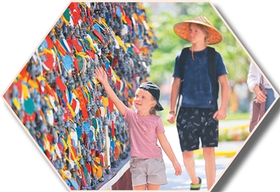 外国游客在海南三亚南山文化旅游区游玩。 |