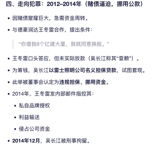 赌博-对赌-失败-入狱!吴长江因挪用资金罪和职务侵占罪,于2021年被广东省惠州市中级人民法院一审判处有期徒刑十年。