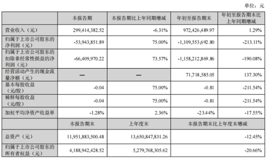 公司2025年前三季度实现营业收入9.72亿元,较上年同期增长1.29%,归属于上市公司股东的净利润-11.09亿元,亏损同比增加213.11%。目前公司仍处于亏损状态,未来盈利情况尚存在不确定性。