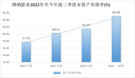 据此计算,博纳影业资产负债率高达65.03%。而自2002年以来,公司资产负债率一直处于逐年攀升的趋势。