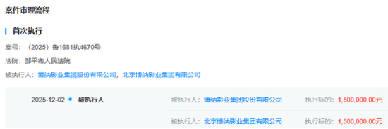 天眼查信息显示,12月2日,博纳影业及其子公司北京博纳影业集团有限公司,被邹平市人民法院列为被执行人,执行标的为150万元。