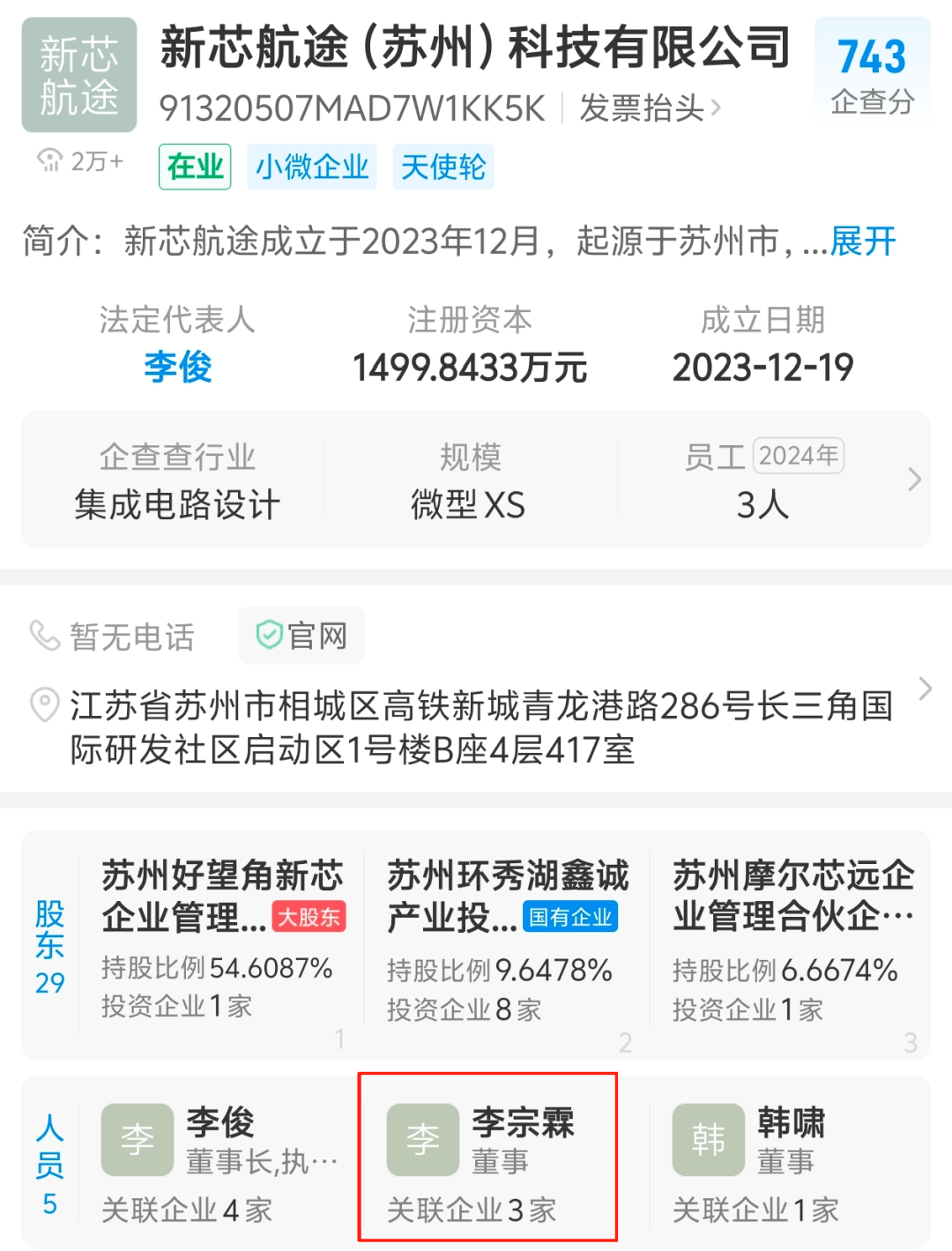他早年是联发科的无线通信事业部总经理,后来加入了哲库,负责日常运营工作。2023年哲库解散后,李宗霖带着哲库软件部总监贾明军等近10名旧部加入新芯航途。
