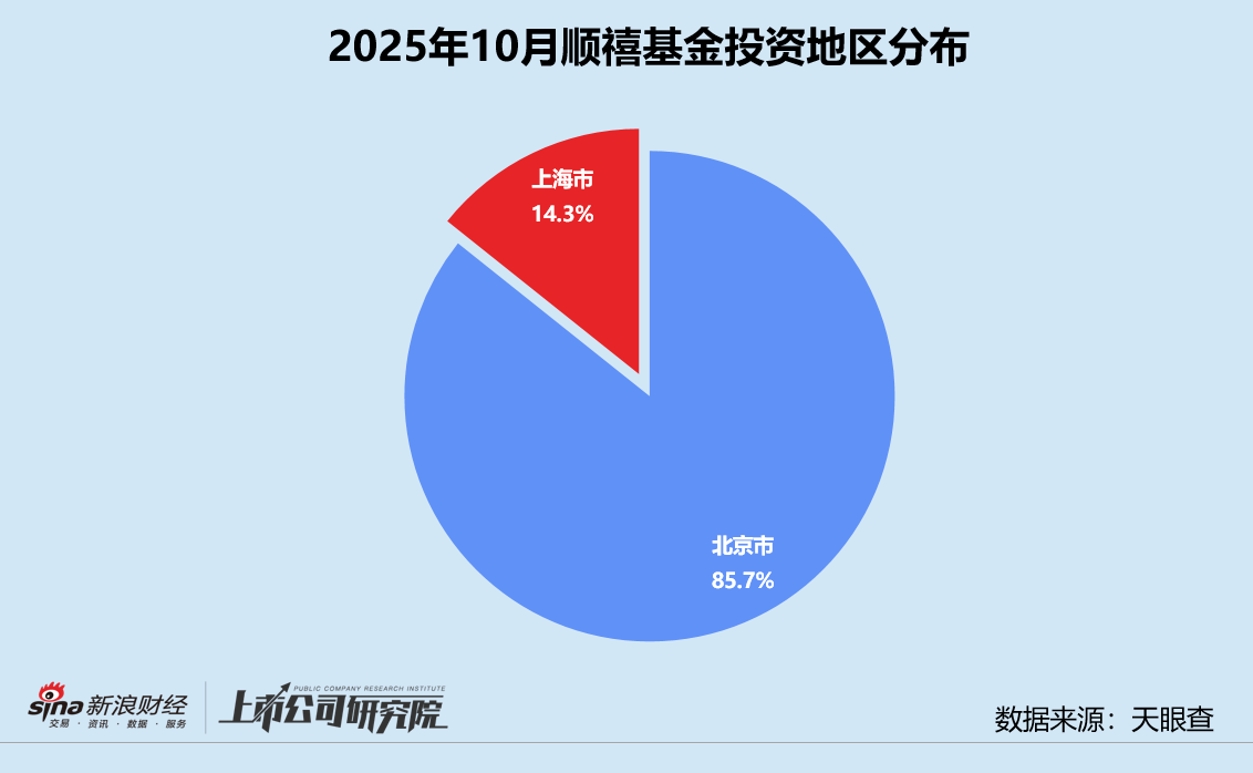 就投资区域分布而言,顺禧基金参投项目高度集中于北京,占比高达85.7%,位于上海的企业约占14.3%。北京和上海作为一线核心城市,聚集了大量优质初创企业、科研资源和产业政策支持,资本与产业融合度高,在机构布局的行业领域有独特优势。