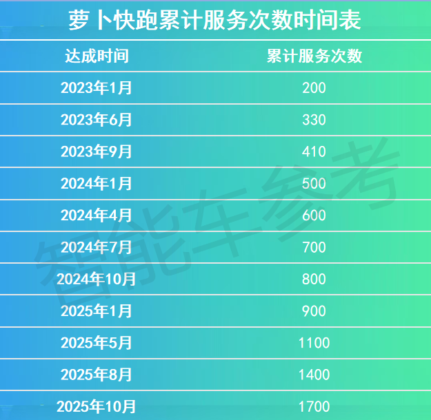 回顾萝卜快跑的各个里程碑节点,将其连成时间线,再去比较累计单量的曲线,会发现增速明显越来越快: