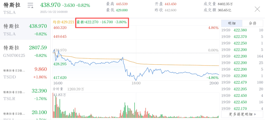 发布财报后,特斯拉盘后股价下跌约3.8%,市值蒸发555亿美元,折合人民币约3955亿元。