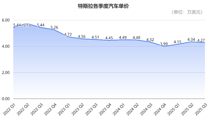 一是来自汽车单价下滑,这一季度单价约为4.27万美元(约30.4万元),同比下滑1.35%,环比下滑1.65%。