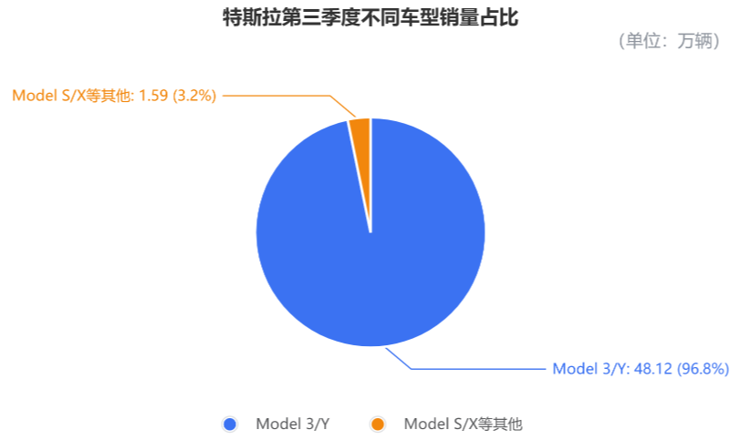 其中,主力军Model 3/Y,在第三季度共交付了48.12万辆,同比增长9.4%,占总交付量的96.8%。