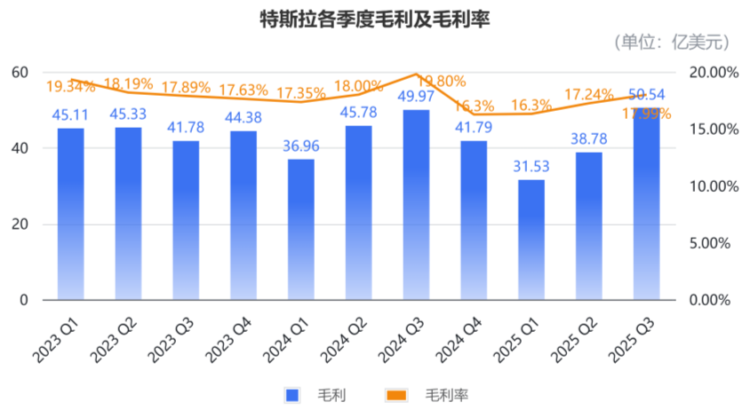 第三季度毛利为50.54亿美元,同比微涨1%;综合毛利率为18.0%,同比下滑1.8个百分点。