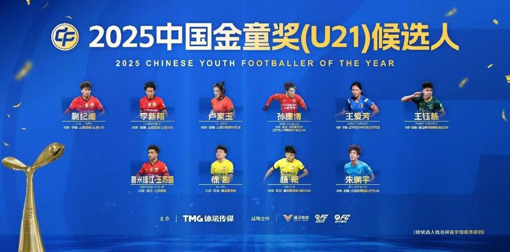 新华社北京12月15日电 在综合考量全年全系列足球赛事的表现后,2025中国金球奖候选名单15日揭晓,吴曦、张玉宁、蒋光太、韦世豪、林良铭等15名球员在列。 本赛季中超联赛前四名球队共有11人入围候选名单,包括中超冠军上海海港队的蒋光太和刘若钒,上海申花队的陈晋一、高天意、蒋圣龙和吴曦,成都蓉城队的韦世豪、胡荷韬和杨明洋,以及足协杯冠军北京国安队的林良铭与张玉宁。 此外,进入2024中国金球奖前三名的山东泰山队前锋谢文能、率领河南队打入足协杯决赛的王上源、在U22国家队连续贡献进球的拜合拉木·阿卜杜外力和排在中超拦截榜**的大连英博队后卫吕焯毅也进入名单。 创办于2017年的中国金球奖迄今只产生过4位得主:2017年的冯潇霆、2020年的吴曦、2022年的张玉宁,以及在2018、2019、2021、2023和2024年五次问鼎的武磊。由于2025年长时间因伤缺阵,武磊没能入选大名单。从各位候选人年度表现来看,2025中国金球奖竞争格局较为开放,角逐或将更加激烈。 与此同时,中国金球奖评委会还公布了中国金帅奖候选名单,新任中国男足主帅邵佳一、带领武汉车谷江大夺得女足亚冠冠军的常卫魏等入选;中国金童奖(U21)候选名单中有在中超联赛和各级国家队发挥出色的王钰栋;中国金童奖(U17)候选名单由魏祥鑫领衔,这名小将不久前宣布将加盟法甲欧塞尔俱乐部;中国金手套奖候选人包括颜骏凌、刘殿座、侯森等中超门将。 由于本年度中国足球协会杯(女子)以及五人制足协杯等赛事还未完赛,为保证候选人遴选的公平公正,2025中国女子金球奖和中国五人制金球奖的候选人名单将在上述赛事完赛后公布。 据介绍,中国金球奖以拥有中国国籍的足球人为评选对象,评选发起方体坛传媒联合国内国际超百家权威媒体的评委及多位特邀评委共同为各奖项投票。2025中国金球奖颁奖仪式预计于明年3月举行,各奖项得主将在颁奖仪式上揭晓。