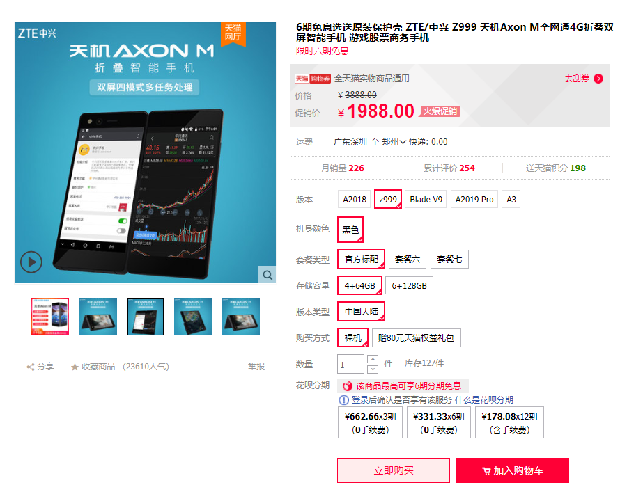 比如去年10月份,中兴发布的天机Axon M折叠手机,通过铰链连接的方式实现屏幕折叠。截至目前,该款手机在京东中兴官方旗舰店累计收到7400+用户评价,天猫仅有254条。从实际反馈来看,中兴天机Axon M就几乎占尽前面所讲折叠手机现存的一些问题,硬件和软件方面都尚存极大改进空间。不知中兴官方是否意识到了问题所在,但可以看到,其售价已经从*初的3888元、4888元调整为1988元、2588元。
